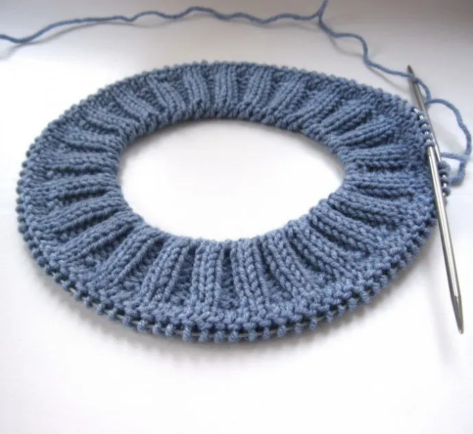 Вяжем горловину до необходимой высоты, затем переходим к имитации пришивной горловины.
