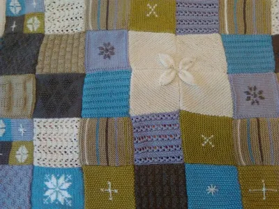 Многие из нас вяжут образец для расчёта количества петель, потом мы эти образцы распускаем. А зачем? Вот прекрасная идея! Вот посмотрела на ваш плед и идея пришла мне в голову. Вы молодец, все пледы отличные.