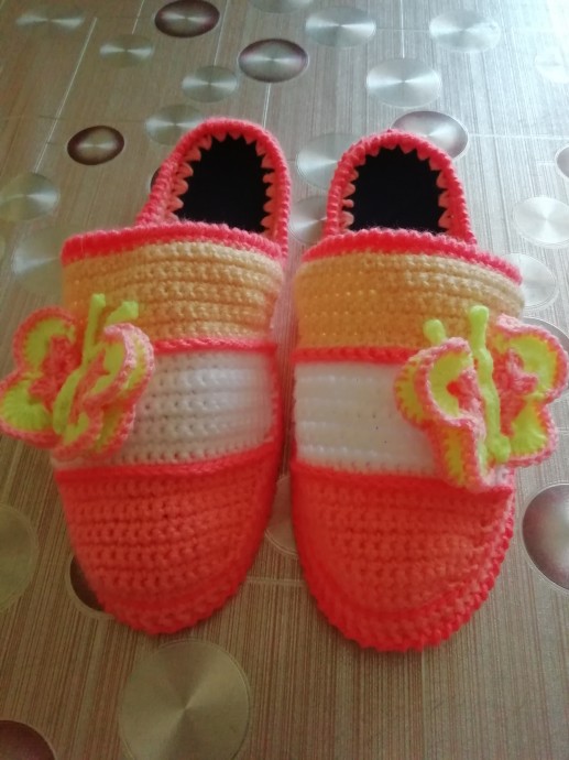 Спасибо большое! Подошву я сделала из двух стелек для обуви. Верхняя для обвязки, а нижнюю я приклеила, чтобы нитки при ходьбе не протирались)))