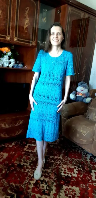 Все мы сейчвс в самоизоляции. Но лично мне «посчастливилось побывать в жестком карантине». Ушла из дома в магазин, вернулась-везде оцепление. И заперли нас на 2 недели без права выхода ни по каким делам. Спасибо друзьям-носили продукты! Ну, а заняться рукодельницам есть всегда чем. Вот и связала подружке платье и шаль по онлайну Илоны, за что ей отдельное спасибо. Благо, пряжа всегда в заначке есть. Модель-моя дочь. Правда, размеры у них разные:40р и 48р. Но вроде бы неплохо смотрится. Итак, платье связано из пряжи Алисия(Турция), 72%хлопок и 28% полиамид, 100г-360м, спицы N3,5-2,5. Расход на 48р-400г.