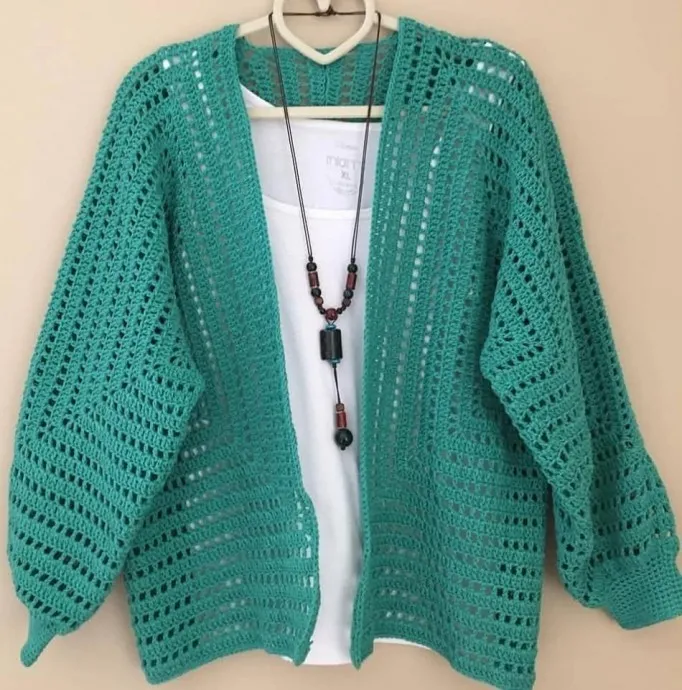 связать 2 шестиугольника, сложить как на фото и сшить по спинке.