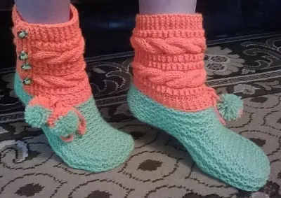 Интересный вариант вязаной обувки: высота хорошая, внешний вид привлекательный.