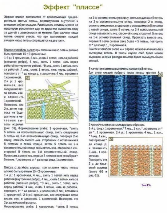 Способ вязания с эффектом "плиссе" и складок в узорах с образованием ровных складок гармошкой показывает свою красоту в свободном ниспадающем направлении.