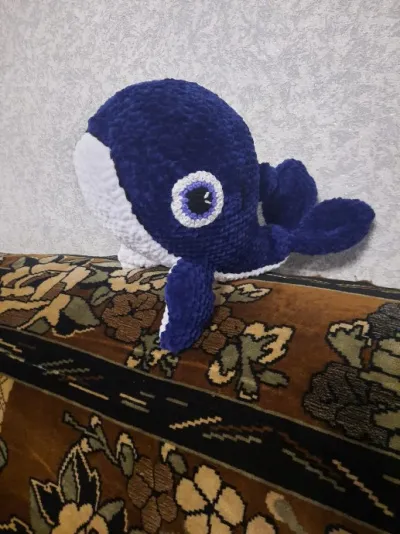 Доброго времени суток, дорогие рукодельницы, на выходных связался вот такой китенок. по Мк А. Коноваловой. Вязала из ярнарарт дольче, длина китенка примерно 37-38см вместе с хвостом, высота в самой широкой части 15-16см, вязала крючком №5.