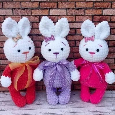 Очаровательные зайки из плюшевой пряжи