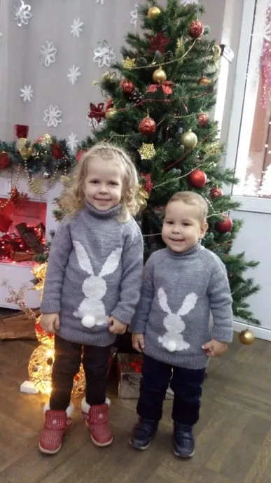 Какая прелесть! Внучата сами как зайчики)))) Людмила, свитерочки сшивные по бокам? Тоже хочу с рисунком, но без швов, пока не знаю как связать.