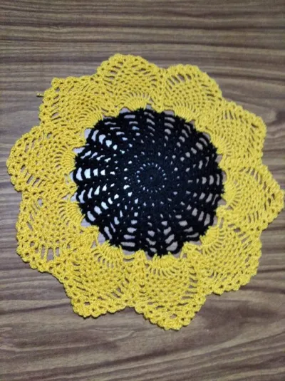 Вот и готова новая салфетка Подсолнух. Связала буквально на одном дыхании. Так хотелось быстрее увидеть, что же получится у меня. Вязала крючком №3 из пряжи Kartopu etamin..Диаметр салфетки 32 см