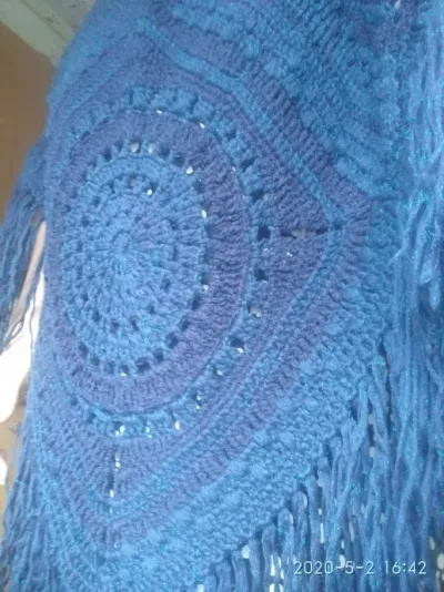 Перебрала старые запасы ниток , и вот такое получилось пончо. Я очень довольна. Так в нем комфортно и уютно.