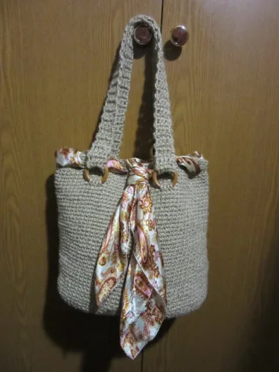 У дочери была сумка из кожзаменителя, украшенная косынкой. Вот у меня и родилась идея - а почему бы не связать связать сумку на лето .в таком же стиле?