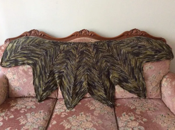 Очень интересно связана шаль. Пряжа понравилась, как легла. А в развернутом виде смотрится, как нарисовано.