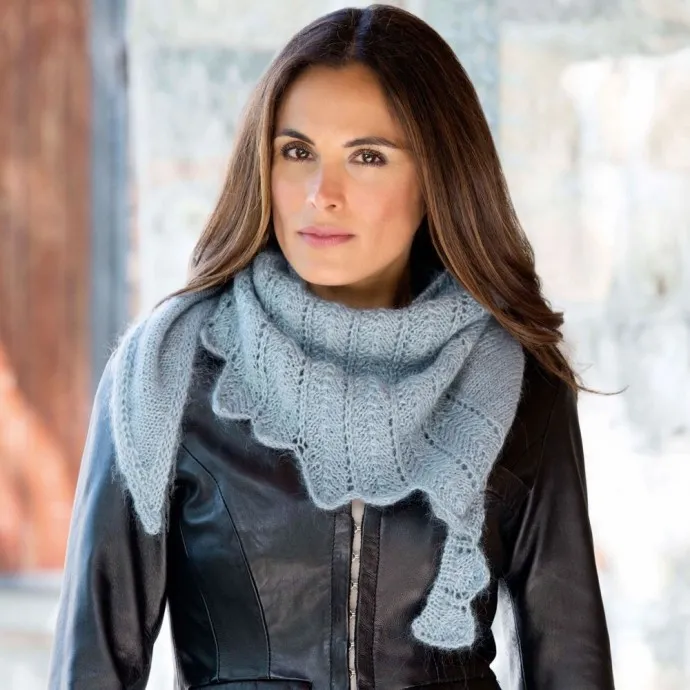 Классическая треугольная шаль состоит из двух частей: одна связана лицевой гладью, другая — ажурными волнами, формирующими край.