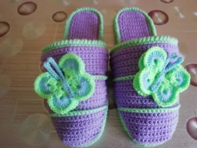 Добрый день дорогие рукодельницы и рукодельники. Представляю Вам связанные тапочки для мамы моего мужа. Такие же тапочки, только розовые я выставляла на первый конкурс карантина. Моей свекрови розовые тапочки понравились, и ей захотелось такие же. Вот и связала фиолетовые. Карантин закончится, отвезу, надеюсь ей тапочки понравятся.