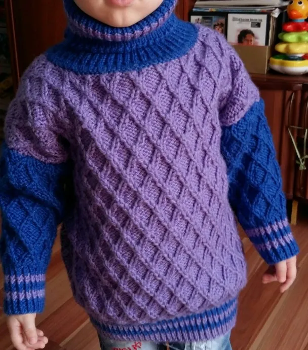 Вот такой свитерок для внука получился из остатков пряжи Alize. Очень теплый получился.