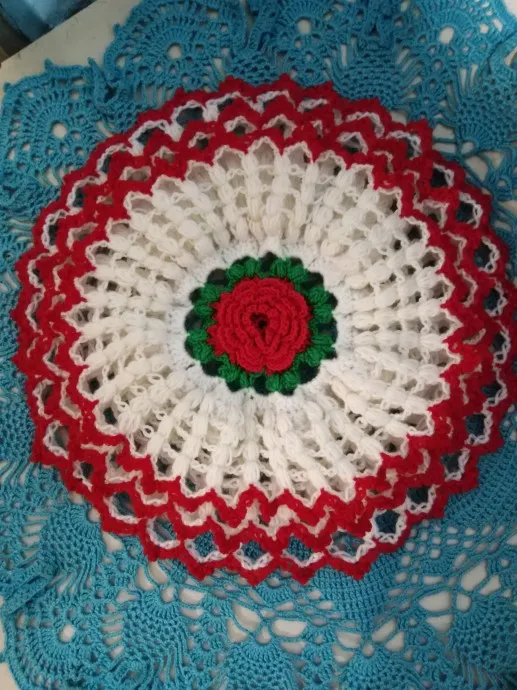 Салфетку вязала крючком акриловыми нитками - Пехорка