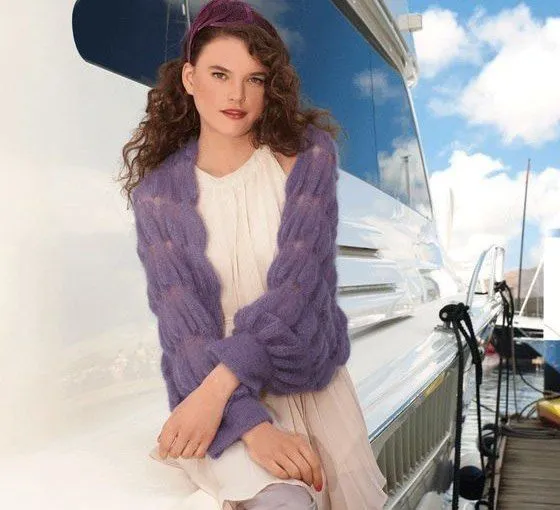 Пряжа (70% мохер, 30% шелк, 210 м/25 г): ок. 125 г лилового цвета прямые спицы №3,5 и 5.