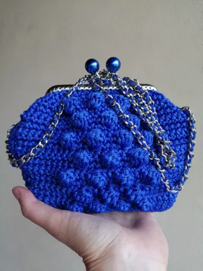 Маленькое вязаное чудо кобальтово-синего цвета с длинной цепочкой, позволяющей носить сумочку Crossbody. Невесомый домик для мелочевки (телефон, ключи, губнушка и пр.) в модном цвете и пружинящей форме станет незаменимым аксессуаром этим летом для модниц всех возрастов. Размер фермуара 12,5х8,5, высота 14 см. ПЭ шнур, крючок н. 3. Дизайн мой, без схем и описаний (могу сделать по запросу). Всем хорошего настроения!