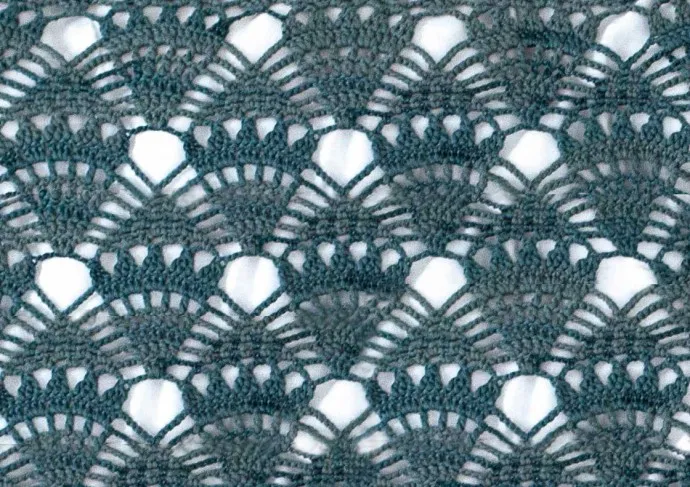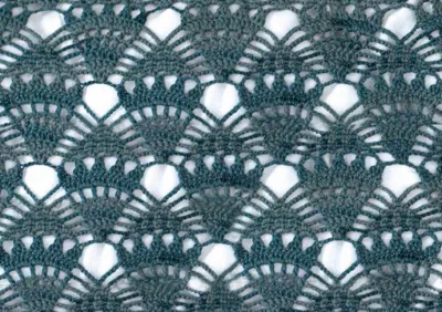 Этот ажурный узор красиво смотрится на больших ровных изделиях, таких как палантины, скатерти или покрывала.