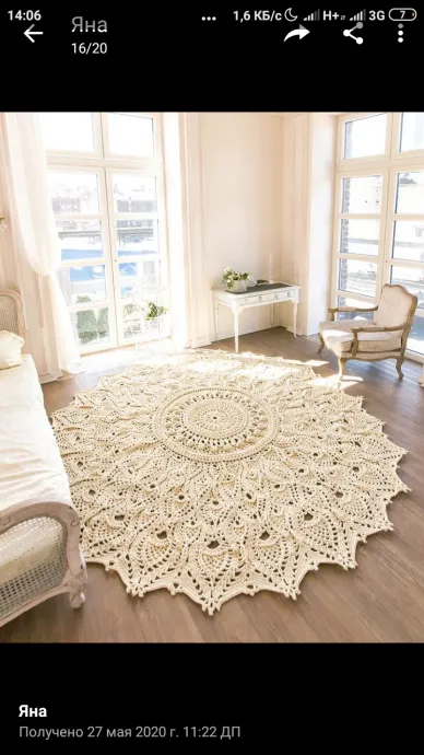 Ищу схему для такого ковра, а также посоветуйте из какой пряжи лучше вязать и каким крючком. Читала, что делают из полиэфирного шнура или хлопка. Также есть идея смешать лен и крапиву. Мне надо, чтоб его можно было постирать в машинке, так как планирую светлого цвета. Хочется, чтоб был тонким.