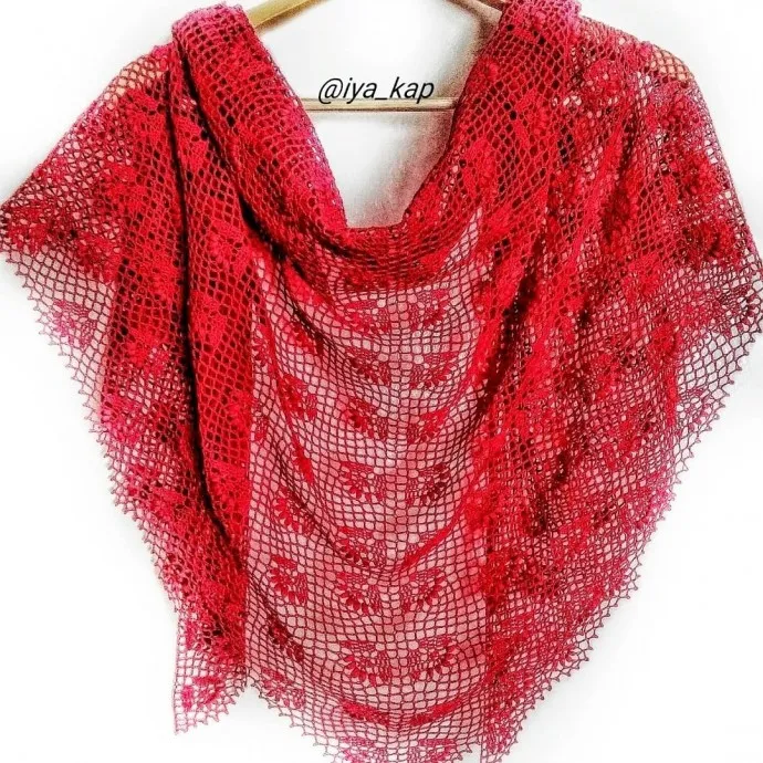 Шаль связана из итальянской бобинной пряжи (50%хлопок,50%шёлк), крючок 1,25.