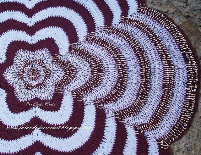Для розы из 26 лепестков набрать 52 ВП. 3 ВП подъёма, столбик с накидом (С1Н) в четвёртую петлю, ВП, [С1Н в следующую петлю, ВП, С1Н в ту же петлю - получается буква V, ВП], повторить, что в квадра...