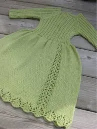 Подол кружевной (8 кругов). Вставная кружевная вязка из 7 петель. Это зимнее/осенние платье. Оно вяжется снизу верх. Туловище вяжется перекрученной резинкой. Рукав 3/4 и вяжется как реглан.
