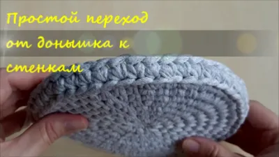 Простой переход от донышка к стенкам при вязании крючком сумки или корзины