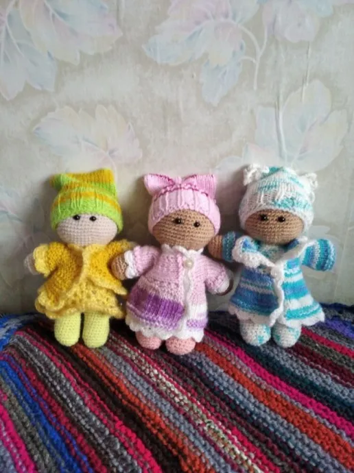 Связала пупсиков крючком, приодела их. Подарок Внучкам подруги, поедут в Самару.