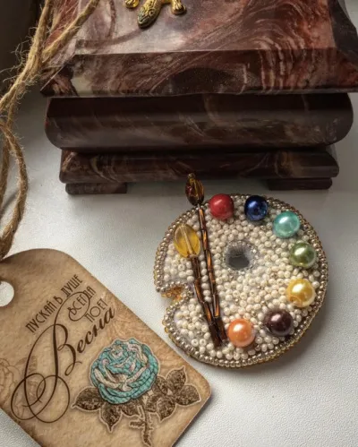 Брошь по набору Crystal Art ,, Палитра,, из бисера для дочери