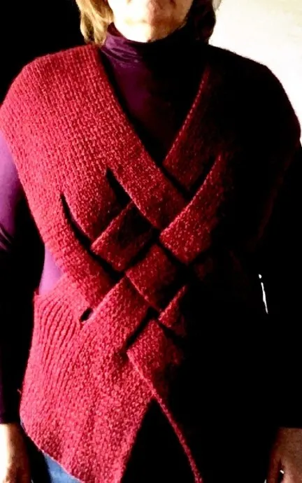 Милые коллеги по увлечению, правильно отметила одна вязальщица, что надевается жилет очерь просто через голову. И задуман он, и выполнен именно как "плетенка с дырками". Демонстрирую.