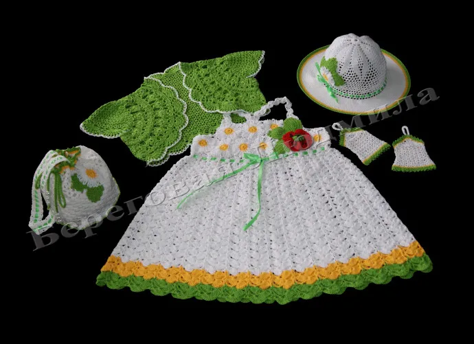 Нарядный комплект для девочки связан крючком из хлопка. В жаркие дни вашей малышке будет комфортно в нем.