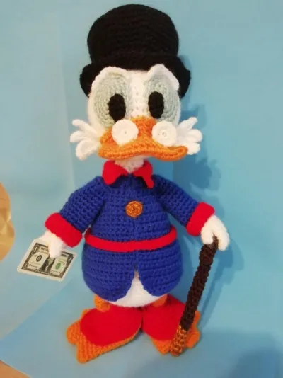 Круто, очень хорошо помню этого мультяшного героя. Вам удалось при создании Скруджа передать даже его характер, сходство 100%. Вяжите всех остальных героев и создавайте кукольную версию этого мультфильма. Спасибо.