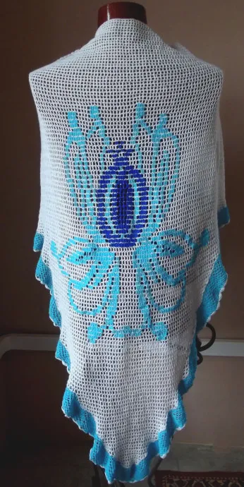 Связалась у меня шаль. Обычная филейка крючком, по ней вышивка. Мне хотелось уйти от однотонности и я решила сделать серию цветных шалей с вышивкой. Не знаю, найдет ли это признание. Хотелось бы чтобы вы оценили и честно сказали свое мнение. У меня уже глаз замылился, начала сомневаться, понравится ли такое. Мне нравятся яркие, нарядные цвета, может я слишком ими увлеклась и такие вещи не нужны?