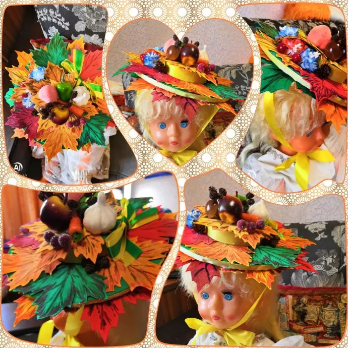 Поделка для детского сада "Осенняя шляпка". Долго думали как, из чего .... Долго искали, подбирали материал для поделки...., сделали за три дня. Получилась вот такая осеняя шляпка.