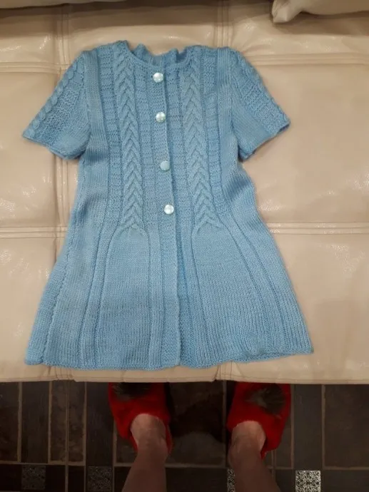 Вязать начала еще ранней весной, во время начала карантина, домучила на эти выходные, долго рукава вывязывала, они не подходили по описанию, пришлось самой додумывать. Во истину- большое вяжется быстрее и проще, чем мелочь! Пряжа детская, вяжется еще ажурная шапочка. Планируется в этом наборе посещать церковь.