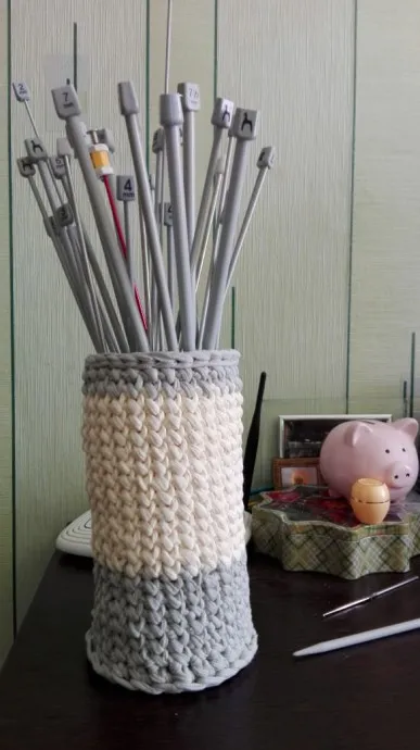 Здравствуйте дорогие Феечки! Большие готовые работы у меня закончились,но хочу вам еще показать как решила навести порядок в инструментах.Вот что у меня получилось)) Вязала из трикотажной пряжи барби. 100 % хлопок моточек 320 г - 100 м