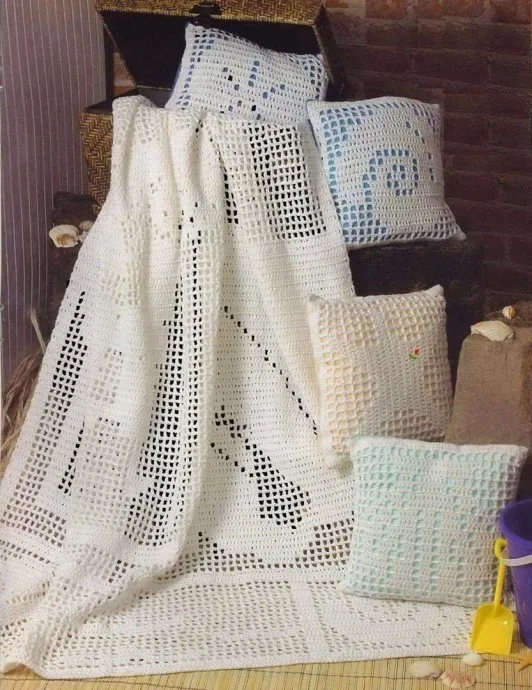 Подушки и пледик в филейной технике