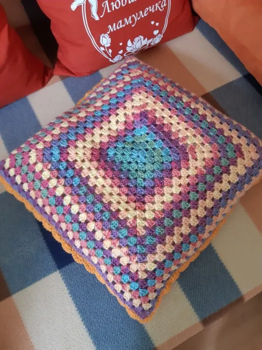 Решила выбросить подушечки , но внучка ( их у меня 3 ) попросила себе . Старые наволочки срезала выбросила , подушки постирала , новые связала - ничего особенного , а ребенок рад и мне приятно