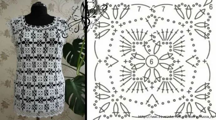 Симпатичный квадратный мотив для ажурной летней кофточки