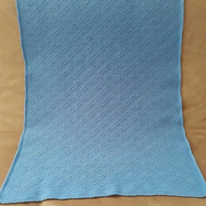 У двух моих подруг родились внуки (практически в одно время). И вот связала в подарок такие пледики (начало моего обучения на вязальной машине). Связаны из Пехорской пряжи "Австралийский меринос" - 100г/400м, 95% мериносовая шерсть, 5% акрил. Края обвязаны крючком.