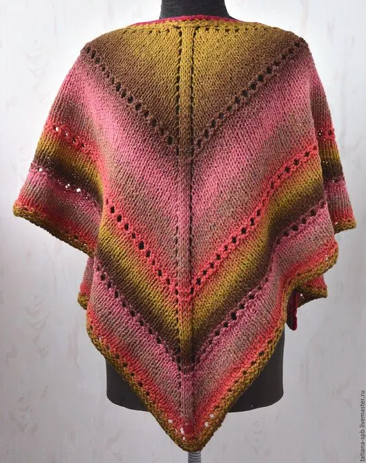 В процессе вязки первой шали я поняла, что нитки с пестрым градиентом( не уверена, что точно назвала)( какие я планировала) с рисунком не сочетаются. Либо- либо. с пестрым, примерно вот такое