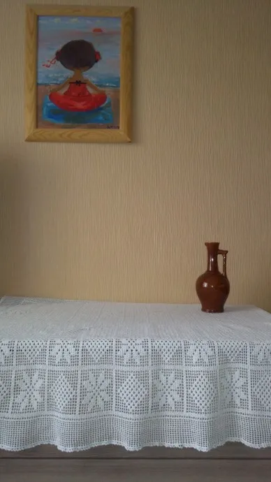 Нашла в старом журнале по вязанию "Валя-Валентина" скатерть в филейной технике. Филейкой вязать нравится, но вот салфетки и скатерти не вязала. Автор рекомендует пряжу Pelikan. У меня ниточки "Снежинка", крючок, по-моему, №1. Ниточки тонкие, поэтому узор не получился таким выразительным, как у автора. Размер скатерти примерно 70 х 120 см.