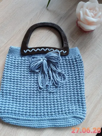 Так как сумочка для себя , то ручки не новые ( с другой срезала ) . На сезон хватит , а там другую свяжу . Надо дочку попросить чтоб выписала детали для сумочек ...