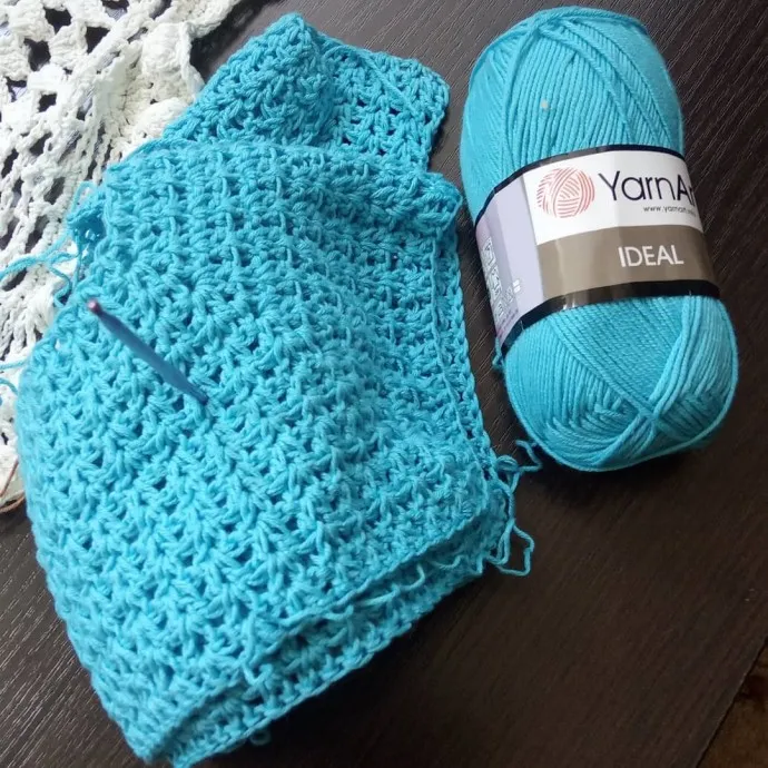 Здравствуйте! А вот вторая вещь из марафона, пойдем сейчас выгуливать ;) . Футболка Bella, связана из пряжи идеал от Ярнарт. Вязала первый раз из этой пряжи. Пряжа мягкая, расход не большой, ушло всего 1,6 моточка на рост 113. Единственное кто будет брать данную пряжу, линяет.