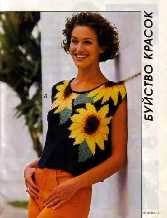 Где-то у меня в бумажном виде этот журнал хранился. Подсолнухи эти на многие годы в памяти остались, такая летняя яркость в узоре, прелесть!