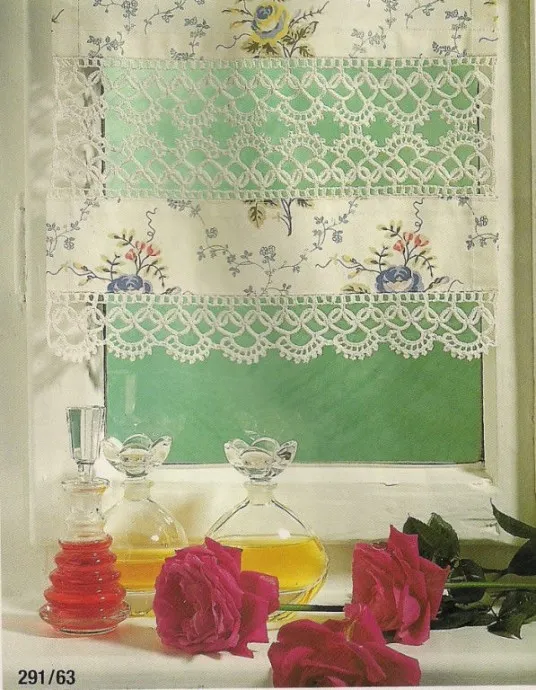 Идея для вязаной занавесочки, вы любите сочетание текстиля и вязаного полотна?