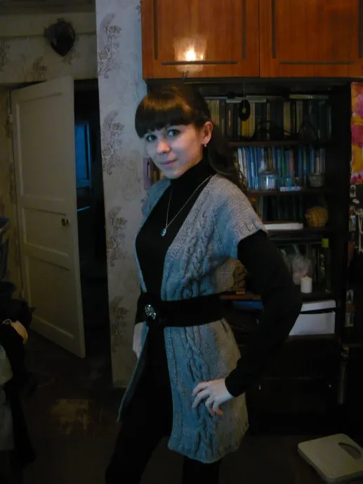 Да и сейчас ещё иной раз одевает. Вязала лет десять назад, но… она у меня в одной поре, так что и сейчас подходит ей.