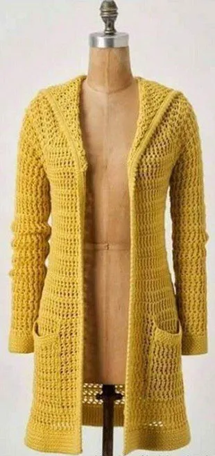 Стильный кардиган с капюшоном, вяжем крючком