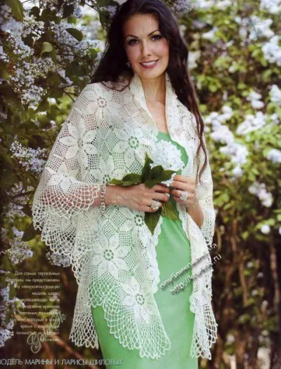 Как приятно прохладным летним вечером завернуться в такую великолепную ажурную шаль, связанную крючком. Шаль состоит из мотивов, связанных по двум схемам тонким крючком. За счет этого шаль выглядит легкой и ажурной. Чтобы связать эту замечательную модель, вам потребуется много терпения и трудолюбия.