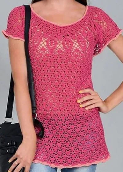 Ooh… I like that lacy stitch pattern! And the «leaf» shape at the neck. Appealing