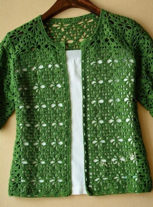 Зеленый жакет крючком